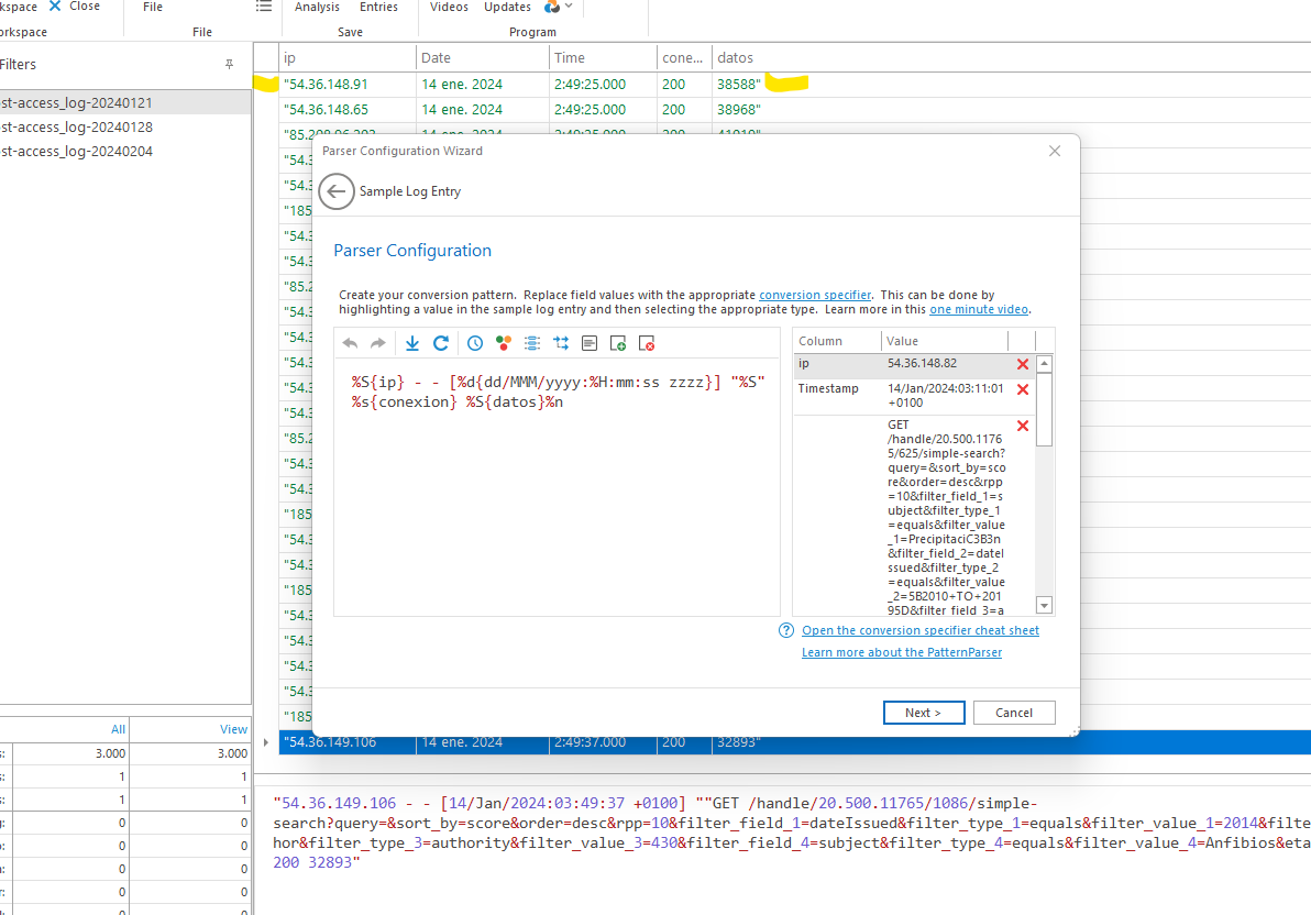 When parsing the logs, it puts quotes in the first and last column and I wish they did not appear.